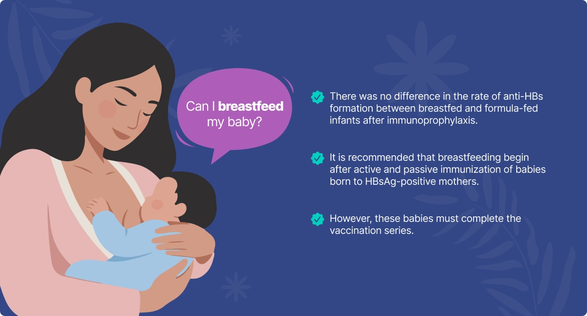- If the baby has received the Hepatitis B vaccine and immunoglobulin (HBIG) after birth, breastfeeding is safe.